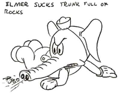 (1936) The non-heroic Elmer Elephant rescues Tillie Tiger from a mad gorilla. Barks made numerous gags and sketches for their fight. |